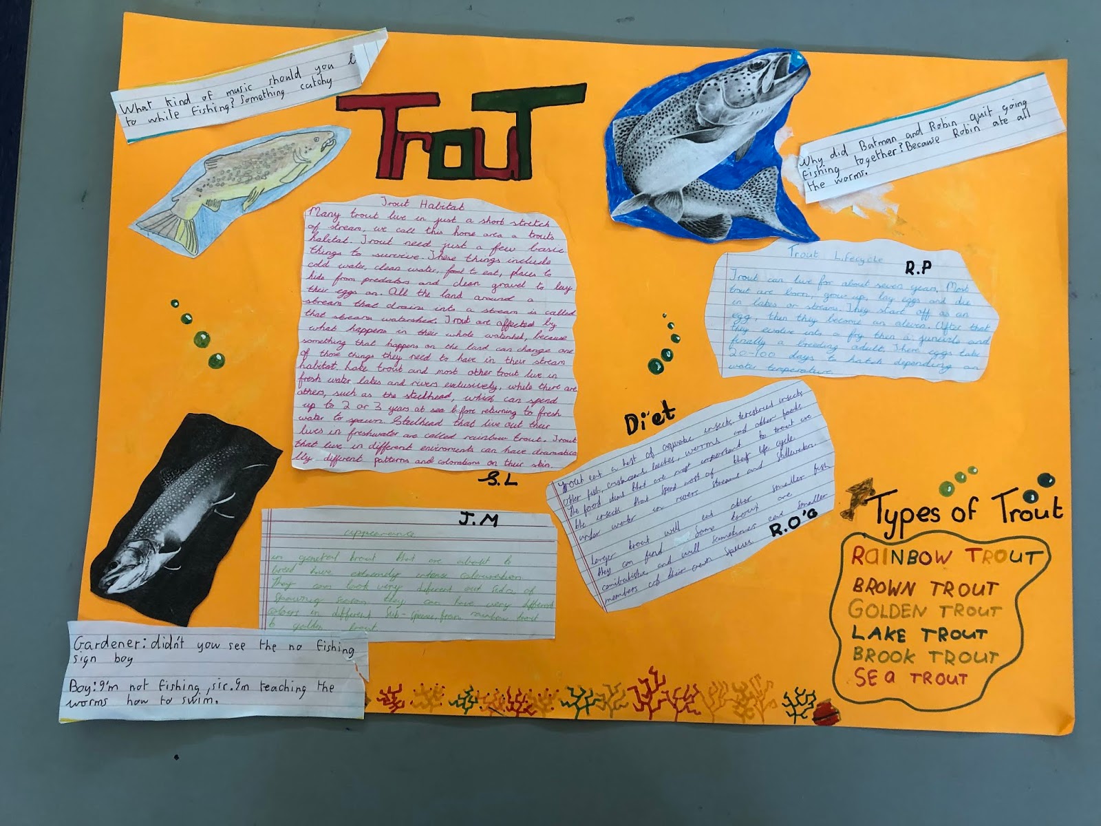 The children in their colour groups have been working on Irish freshwater fish projects over the last few weeks. The discussed their appearance, habitat, distribution, diet and life cycle.