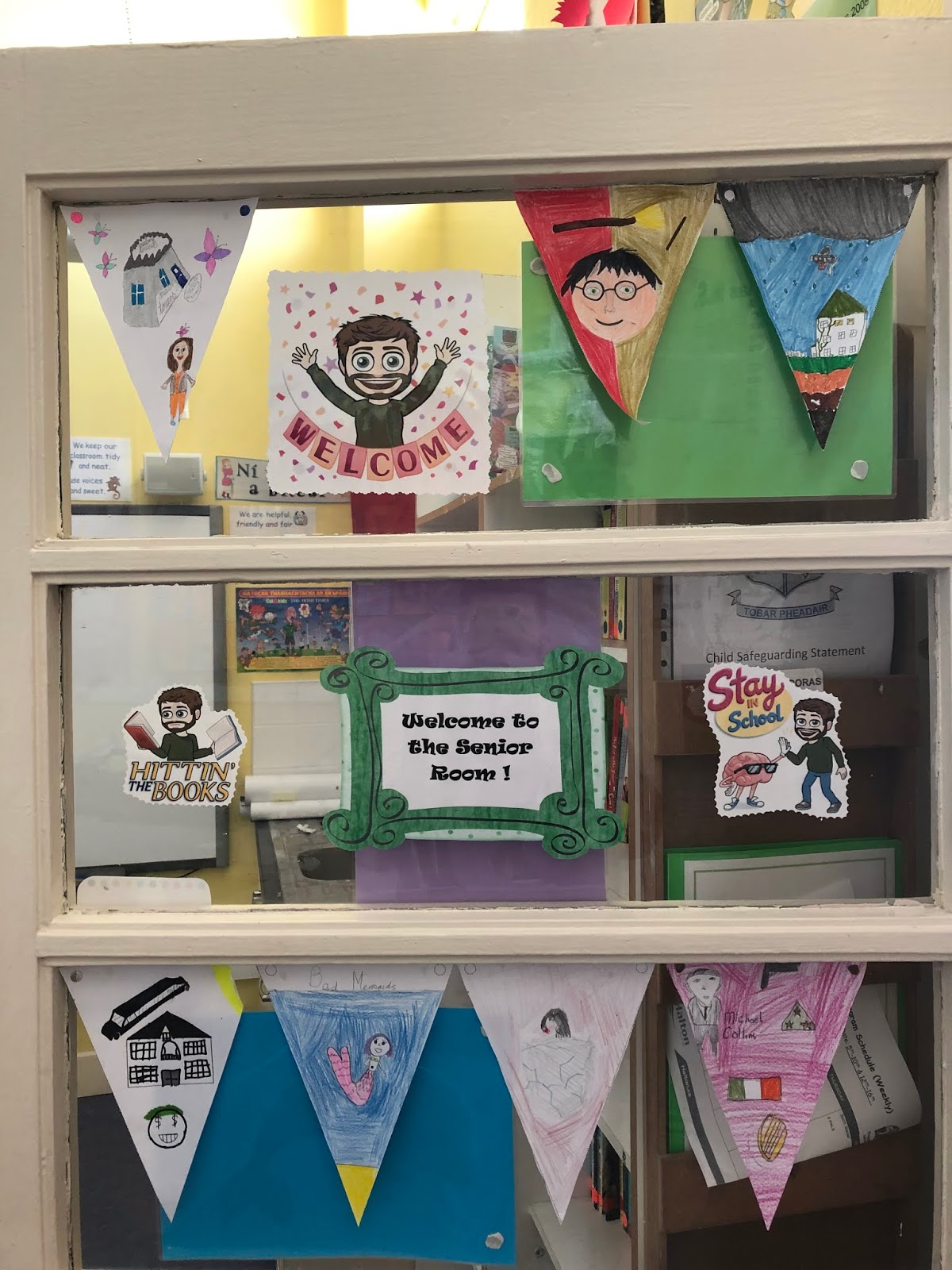 My budding artists created lots of beautiful art over the month. We designed our own hot air balloons (some even named them!), made shamrock men with the younger classes for Seachtain na Gaeilge and then painted our initials with warm and cool colours.